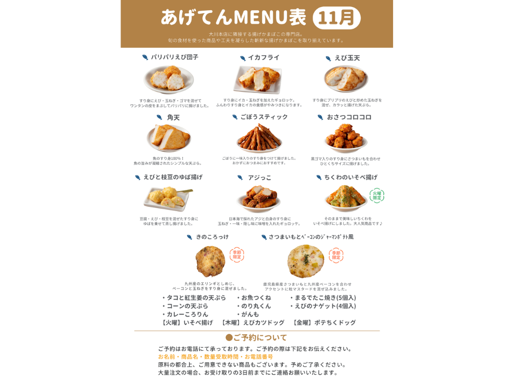 【あげてん】11月メニュー表